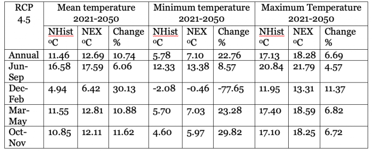 Table 2. Annual & seasonal mean temperature projection under Representative Concentration Pathway (RCP) 4.